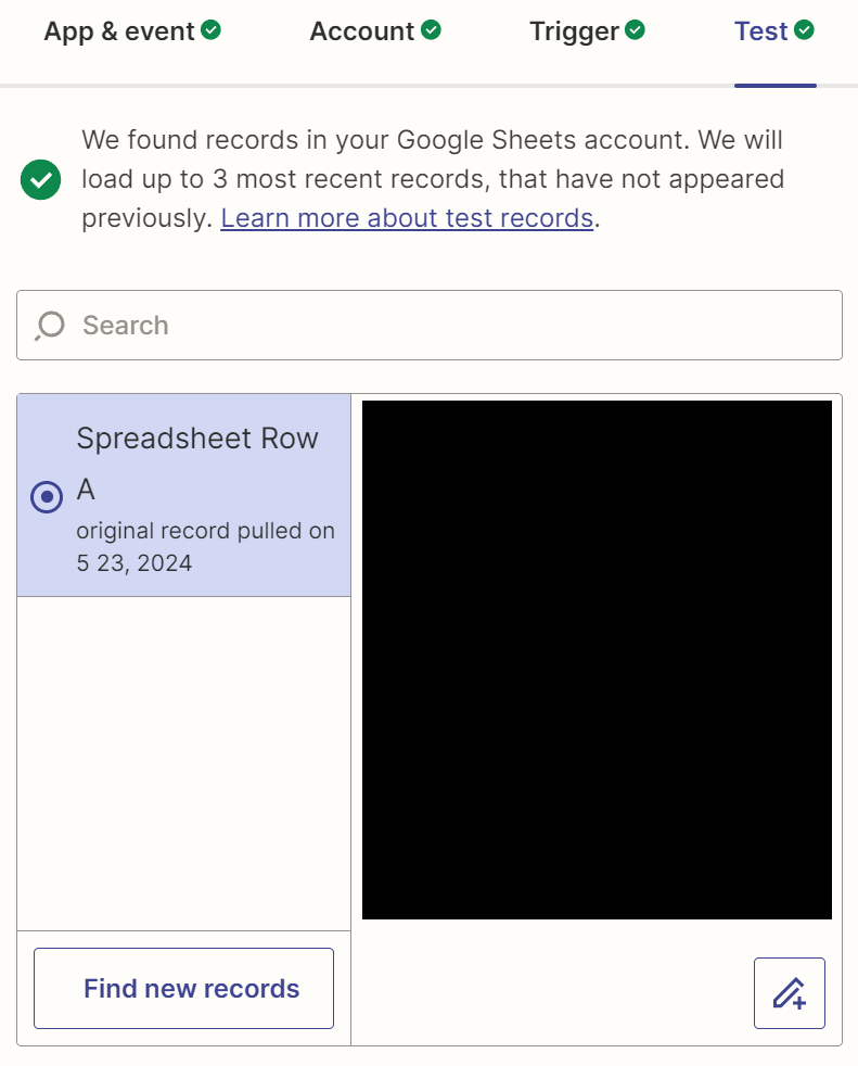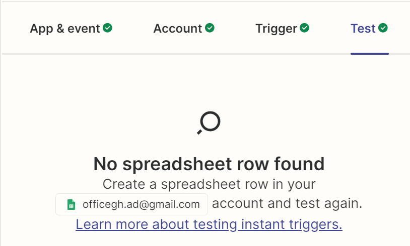 テスト後に下記画像が出た場合はスプレッドシート内に何も情報が入っていないために起こっている可能性があるので、一度STUDIOフォームからテスト送信を行い、スプレッドシートに情報を入れ込んでから再度テストを行う。
