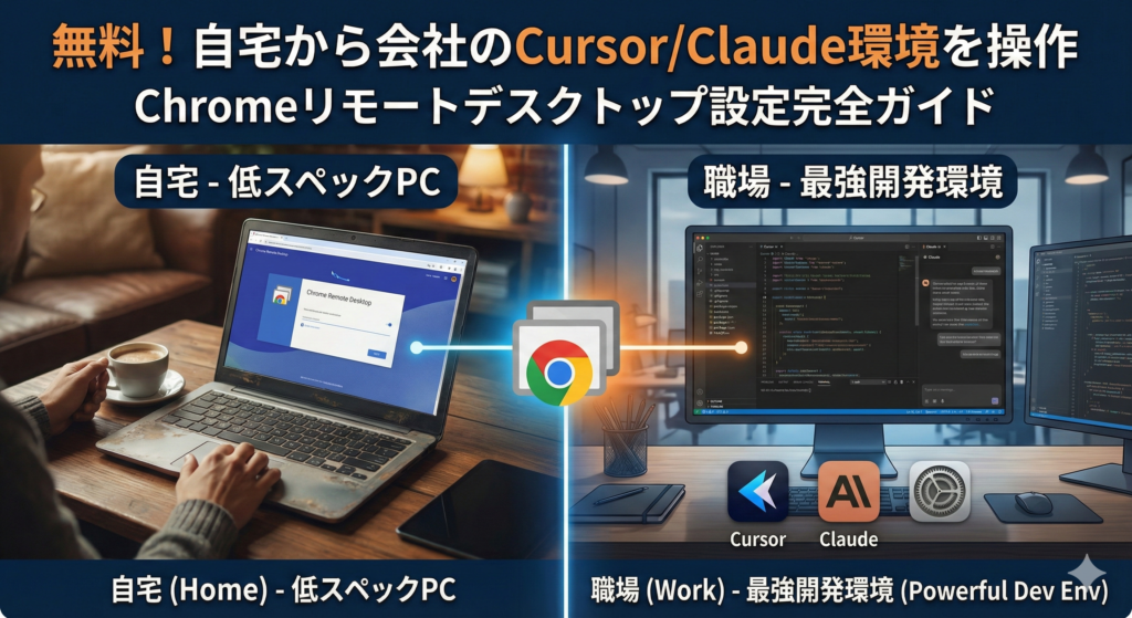 「自宅で少し作業をしたいけれど、家のノートPCはスペックが低い…」 「会社(または別の場所)のデスクトップには、CursorやClaude、Git、各種APIキーなど完璧な開発環境が整っているのに、また一から設定するのは面倒すぎる…」