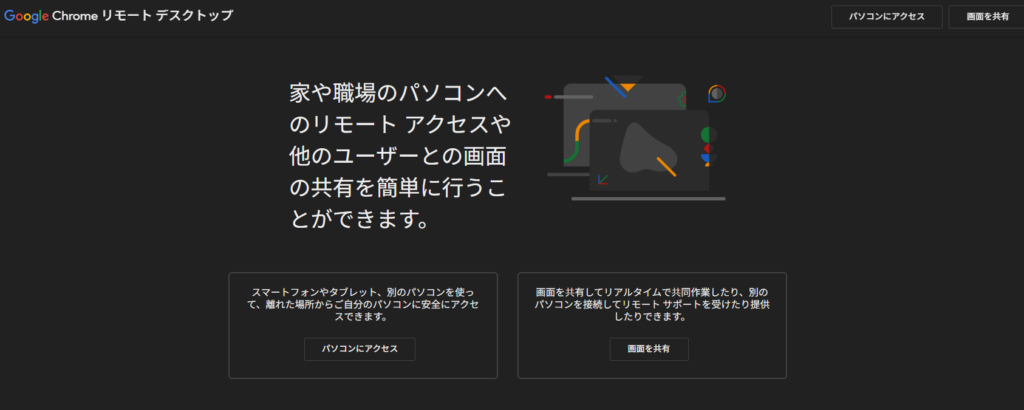 [Chrome リモート デスクトップのトップ画面]