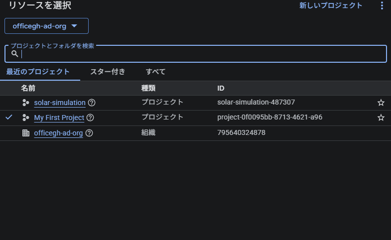 (キャプション:プロジェクト選択画面。今回は「solar-simulation」という名前で作成)