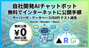 自社開発AIチャットボット 無料でインターネットに公開手順 サーバー代・データベース代0円テスト運用 Vercel ・Render・Neon