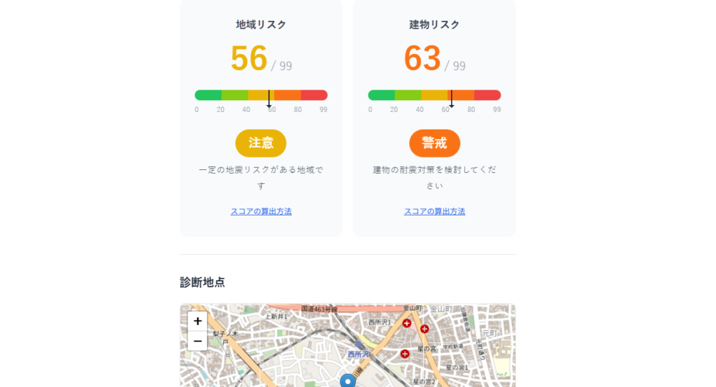 住所と建物情報を入力するだけで、防災科研J-SHISの地盤・地震データとAIが地震リスクを無料診断。30秒で総合リスクスコアと個別アドバイスを提供。